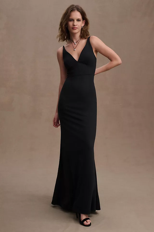 The BHLDN Tatum Crepe Gown makes a stunning choice for bridesmaids, mothers of the bride or groom, and formal wedding guests alike. The maxi length gown features a sleek v-neck down the front and back alongside a structured, corset-style bodice — offering a look that’s sleek and chic.