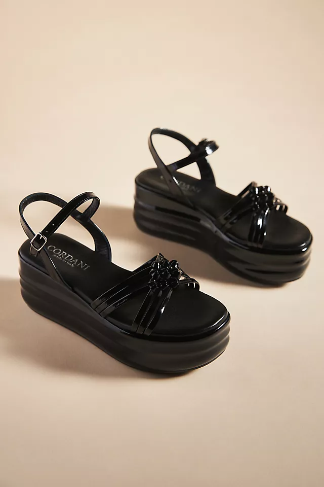 - Patent leather-wrapped platform