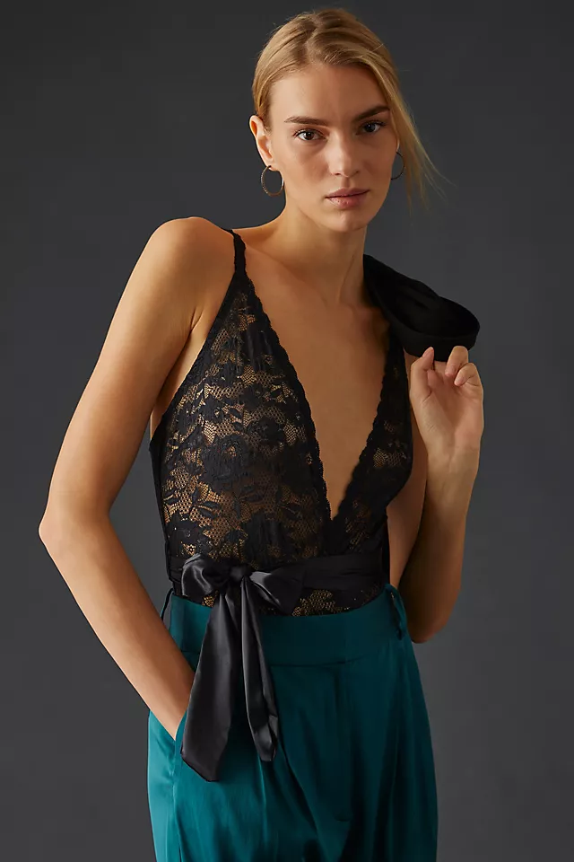 - Deep v-neck