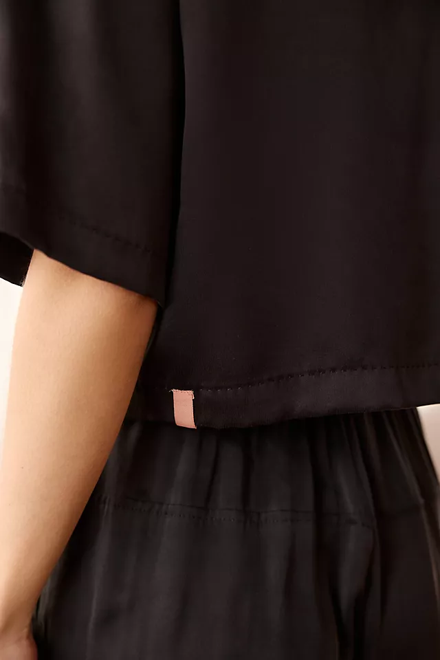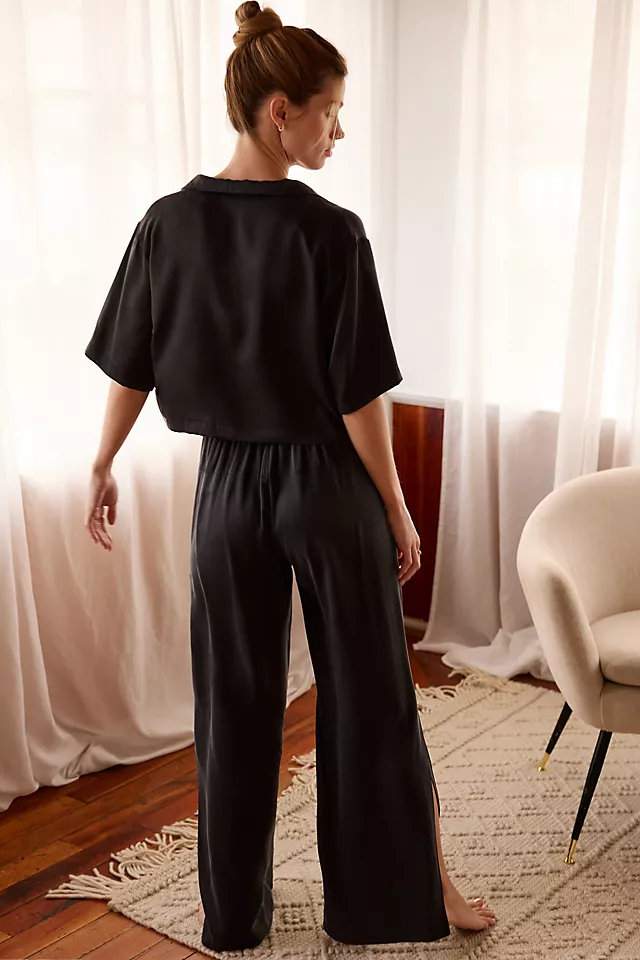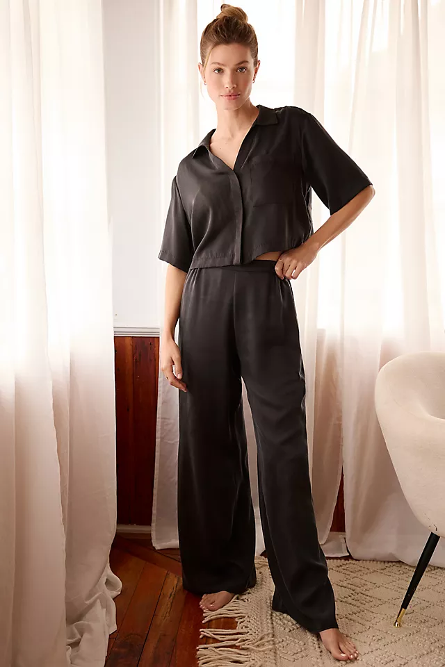 - Includes buttondown top and pull-on pants
