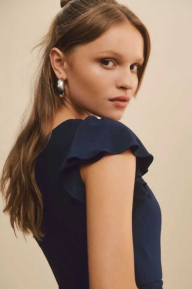 - Single ruffled cap sleeve