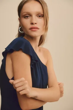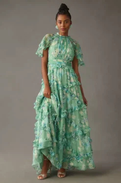 Pinnacle By Shruti Sancheti Mock-Neck Colorblock Ruffle Dress