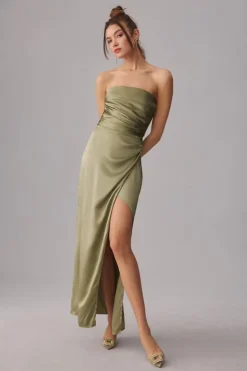 Rebecca Vallance Brittany Strapless Bow Side-Slit Sheath Gown